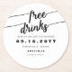 Funny Free Drinks Save The Date Black and White Round Paper Coaster