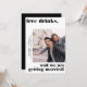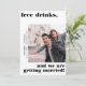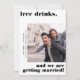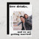 Funny "free drinks and we are getting married" Save the Date Card. Add your custom wording to this design by using the "Edit this design template" boxes on the right-hand side of the item, or click the blue "Customise it" button to arrange the text, change the fonts and colours, and to also add additional information or images to this design. Click "Customise Further" to open up full editing options. Contact us for more options and matching items.