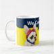 This gorgeous little Frenchie design shows a cute French Bulldog with a blue collar and a red bandanna with the words "We Can Chew It!" as a homage to the vintage posters of World War II. Customise with your dog's name and change the slogan if you have something you want to say.
