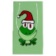 Adorable sitting frog in Santa hat Christmas original art gift bag. Can also add custom text and change background colour when ordering.