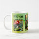 Funny mug featuring a green watercolor design with your custom photos (optional). Kiss the frog and he will turn into a prince ... This mug is great as a joke for Valentine's Day or a boyfriend or husband's birthday.