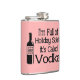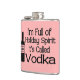 Funny flask says in black letters "I'm Full of Holiday Spirit It's Called Vodka" and has a vodka bottle in black and pink. You can customise this by changing the background colour to whatever you like Makes a funny holiday gift! Go ahead and put a SMILE on their face!