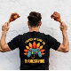 I give wanted to give this a 4 instead of a 5 because these Basic DARK T0shirts run unexpectedly SLIM or Narrow. Which is great if you do not have a potbelly, but I have a paunch. It isn't the shirt's fault that I've got a beer belly. The design and shirt itself is a quality cotton shirt. The color is more of a deep purple, but still a very pretty color. The Basic DARK T-shirts run a bit SLIMMER than the Basic Ts. The neck is a fraction narrower (or seems to be narrower) also. I'm a paunchy middle-aged woman and my neck is 12 inches (31cm) thick and the neckline fell about the same as in the photo of the man, and I had the desire to tug it a bit. So if you're a thick necked man or like loose shirts, be aware these are slimmer shirts. Once I get rid of my lockdown paunch it'll look great. The shirt washed well in cold water with no apparent bleeding. We don't have a dryer, so it hung dry. Did not shrink. Love the colors and the design. The design looks smaller on my shirt than it does on the model on-line. But still, it looks good on the shirt. The printing looks as it does on the model, just the size seems fractionally smaller. Washed garment in cold water, hung dry and design appeared unaffected.