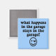 What happens in the garage, stays in the garage! Funny man cave garage shirts, tshirts for men and some women who hang out in the garage with their friends. Humourous man cave tees with winking smile face.