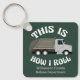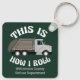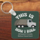 This funny keychain for a refuse truck driver features a yellow dump truck inside the hilarious phrase This is How I Roll. A cool pop culture reference for a trash truck driver who likes modern humour. Cute personalised gift for garbage vehicle drivers with their custom text.