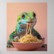 Add a touch of whimsy to your space with this Funny Gecko Eating Spaghetti Poster! Featuring a hilarious gecko indulging in a plate of spaghetti, this poster is sure to bring laughter to any room. It brightens up your walls and adds a playful twist to your décor. Whether hung in a kitchen, dining room, or living area, let this delightful poster showcase your love for humour and quirky design.
