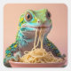 Funny Gecko Eating Spaghetti Square Sticker