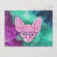 Funny Geeky Cat on Watercolor Backgroun Postcard
