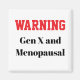 Funny Gen X menopausal magnet featuring a bold “Warning” slogan. Perfect for adding sarcastic humor to your fridge, office, or workspace. A great gift for Gen X women who embrace menopause with attitude, confidence, and a sense of humor.
