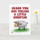 Funny cartoon illustration get well card with a funny cartoon lamb with a temp. on the front and a get well soon message on the inside.