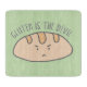 This cutting board is perfect for anyone who eats gluten free. It reads "Gluten is the Devil" above a cute, but evil looking loaf of bread.