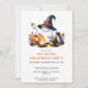 Make cute personalised invitations for your BOO-Tastic Halloween Party with a camping theme for kids. The design features a happy ghost in a witch hat roasting marshmallows for s'mores at the campfire, standing near a tent and a Jack o'Lantern pumpkin. This template makes it easy to type your text for the date and time, place, RSVP and additional notes. Another text can be customised using the Zazzle design tool. The backside is a solid orange colour, which you can change inside the design tool.