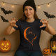 A spectral silhouette floats before a crescent moon — eerie and elegant. This tee brings Halloween mood with subtle style. Wear it where the night calls.
