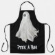 Apron adult size all over print style with customisable text Peek A Boo typography printed with Funny Ghost Of Halloween Past Drawing hand drawn graphic art design artwork illustration by TheFabricSeal print on demand shop at Zazzle.com #ZazzleMade ©️Original. https://www.zazzle.com/store/thefabricseal