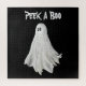 Jigsaw Puzzle tabletop hobby craft and decorative wall hanging art decor with customisable text template Peek A Boo typography printed with a Funny Ghost Of Halloween Past Drawing hand drawn graphic art design artwork illustration by TheFabricSeal print on demand shop at Zazzle.com #ZazzleMade ©️Original. https://www.zazzle.com/store/thefabricseal
