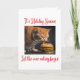 This funny Christmas card features a fat ginger cat bingeing on a tasty burger during the Christmas Holiday period. It is a hilarious card with the words" It's Holiday Season Let the over eating begin". The inside of the card can be personalized with your name and message. Currently, the message poem reads "We hear the bells on Christmas Day, the old familiar carols play. Silent Night and Deck the Halls. Send peace on earth, goodwill to all.