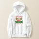 This fun gingerbread man cookie Christmas design is set on the front of the hoodie featuring template text above and below the design. Personalise the template text, remove one or both lines of text or edit using the design tool to select a font style, size and colour you prefer.
