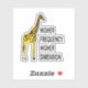 Funny Giraffe Pun Sticker designed by Nisha Prabhu. Cute funny giraffe with pun words ''Higher Frequency. Higher Dimension.'' Add a touch of whimsy to your belongings with this Funny Giraffe Pun Sticker! This sticker is sure to bring a smile to your face and those around you with its charming giraffe pun design. Perfect for decorating your laptop, water bottle, notebook, or any other surface, this sticker is a fun and quirky way to show off your sense of humour. Made with durable materials, it's easy to apply and will last through all your adventures. So stick on some laughter and style with this must-have sticker from Cutehomegifts Zazzle!