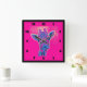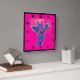 A funny pose from a cute giraffe - sticking out his tongue, in funky neon colours of pink and blue. has a sixties retro pop art feel to it.