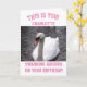 Funny Girly Birthday Card with Swan, Pink Birthday card design featuring a photo that I took of a gorgeous white Swan on a river last winter, the park next to the river was snowy and white, and the swan was the only life around. This is a humourous Birthday card, Which says 'This is You' and a custom name, then 'Swanning Around, on Your Birthday!' This Birthday card is fully custom, add your own text and friends name. Lovely pink swan card for a girl.