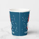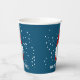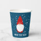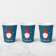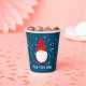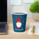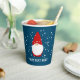 Funny red gnome print custom paper Christmas cups. Cute Holiday party design for kids and adults. Add your own greeting and family name. Fun design for friends, family, business, guests, clients, visitors, children, employees and more. Troll drawing with snow. Double sided print. Blue or custom colour background.