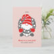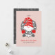 A cute Gnome from Nordic Folk Tradition adorns this cute Holiday and Festive Cards in red and grey tone against a light blush pink background.