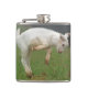 Funny Goat Baby White Goat Jumping in Pasture Hip Flask
