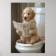 Funny Golden Retriever Bathroom Print, Dog on Toilet with Newspaper