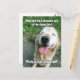 Everyone likes a good joke, especially doggies! This postcard features a photograph of a laughing golden retriever, who asks the question, "What did the fisherman say to the magician?" The answer? "Pick a cod, any cod!" Customisable text on back says, "A joke to make you smile!"