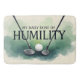 Golf bathroom bathmat. This design features two crossed golf clubs with a golf ball positioned between them, set against a green watercolor-like splash background. The text "MY DAILY DOSE OF HUMILITY" adds a humourous touch, making this bathmat perfect for golf enthusiasts. Ideal for golfers, sports lovers, and anyone with a sense of humour, this modern and funny design adds a playful touch to any bathroom. It makes a great gift for birthdays, holidays, or just because. The green background and golf-themed elements create a fun and inviting atmosphere, making it a unique addition to your bathroom decor.