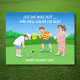 Celebrate a golf lover’s sense of humor with this funny Golfer’s Day card featuring a cartoon OBGYN doctor lining up a crucial putt while a frantic dad and pregnant woman wait nearby. Perfect golf humor card for golfers, dads, doctors, and golf enthusiasts.