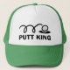 Funny golf hats | Putt King. Cute sports gift idea for men and women golfers. Black and white golf ball and putting hole design. Golfing humour.