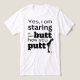 Turn heads on and off the green with this funny golf tee! The clever design features the phrase “Yes i am staring at your butt how you putt” alongside a small graphic of a golfer mid-putt. It’s the perfect gift for any golf enthusiast who loves to mix humour with their passion for the sport. Perfect for holidays, birthdays, or as a fun surprise, don’t miss out—order yours today and let the laughs roll in!