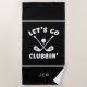 "Let’s Go Clubbin’—and this time it’s poolside. This bold black beach towel features crossed golf clubs, a golf ball, and playful white typography framed by accent stripes. Perfect for the beach, pool, or backyard lounging, it also makes a standout groomsmen gift or birthday surprise for your favourite golfer. Personalise the bottom with initials, a name, or custom text using the modern monogram template. A fun way to bring golf humour into everyday life.