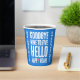 Celebrate the retirement of a soon-to-be former coworker with these funny paper cups, which feature the sentiment, "Goodbye Nine to Five Hello Happy Hour" in a white, grunge style font, with an apple martini cleverly standing in for the "Y" in "Happy" on a soothing baby blue background. Reverse shows identical design.