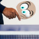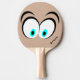 Funny ping pong paddle done in tan, with cartoon graphics of big googly eyes, on both sides. Personalise the black text to read what you want. Makes a great gift idea.