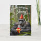 Relaxing in the jungle, this easygoing gorilla is all set to share some wild fun with a special gift in hand.