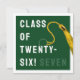 Creative graduation card for Class of '25 graduate featuring green grad cap, gold tassel and funny line. To personalise edit text to add his or her name.