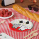 Cool cat-themed graduation party plates featuring funny cats throwing grad caps, for veterinarian school veterinarian graduation party or schools with cat mascots.