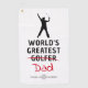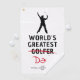 Enhance your father's golfing experience this Father's day! Our funny golf towel features an elegant silhouette of a golfer, with the hilarious phrase 'world's greatest golfer'. But of course, we understand the special bond between a father and his kids, so we've crossed out 'golfer' and replaced it with 'dad'. The best part? You can add your names to make your gift even more memorable and heartfelt. Surprise dear old dad with a gift that combines his love for golf and his pride in being a father.
