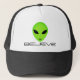 Believe...Funny green alien head trucker hat. Custom colour cap. Great for Birthday, sci fi events and more.