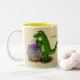 Funny green alligator cooking cartoon Two-Tone coffee mug