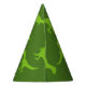 Funny green dinosaur theme Birthday party hats for kids. Fun prehistoric animal design for children. Personalise with name and age. Green Tyrannosaurus rex silhouette print.