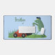Funny green frog mowing lawn cartoon desk mat