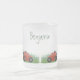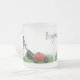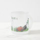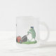 Funny green frog mowing lawn cartoon frosted glass coffee mug
