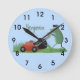 Funny green frog mowing lawn cartoon round clock
