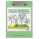 Funny Green Grocer Supermarket Manager Cartoon Clipboard depicts the Fresh Produce aisle after all the customers have gone home for the night.