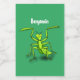 Funny green praying mantis cartoon illustration food label