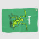 Funny green praying mantis cartoon illustration golf towel