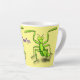 Funny green praying mantis cartoon illustration latte mug
